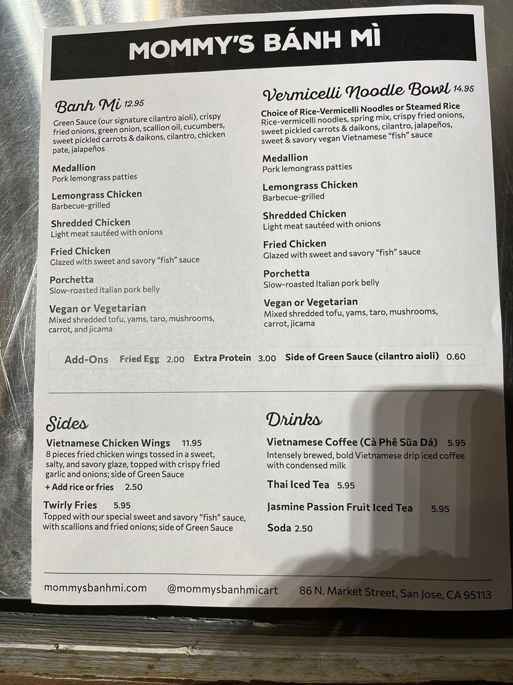 Introducing "Mommy's Banh Mi," a vibrant eatery nestled in the heart of San Jose, where Vietnamese flavors take center stage. Specializing in authentic sandwiches and noodle bowls, this Asian-owned gem has quickly gained popularity for its generous portions and deliciously crafted dishes.